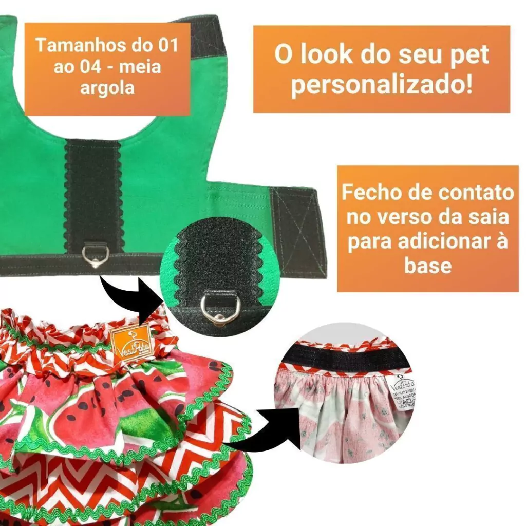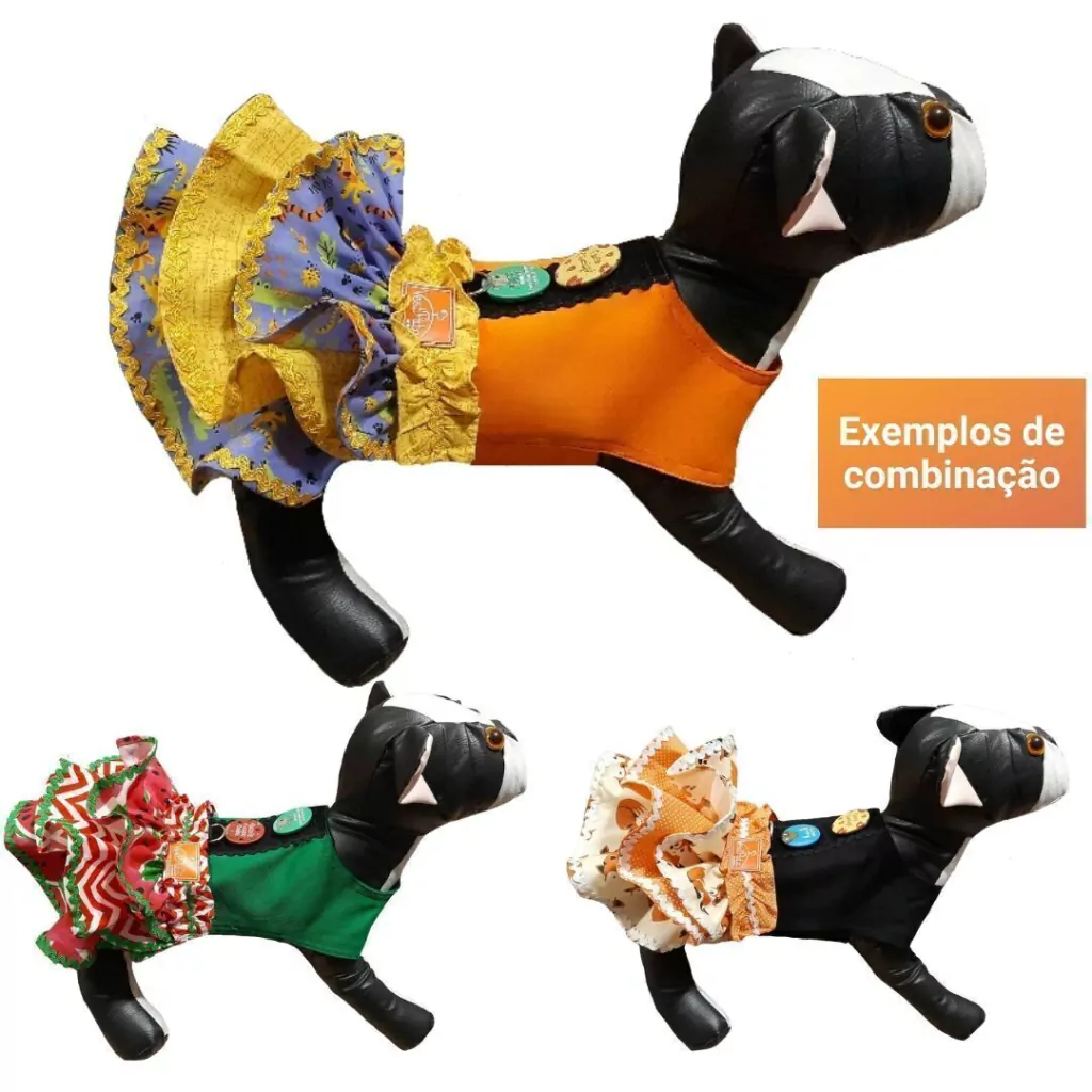 Tenha uma roupa pet 2 em 1, adicione a saia à base e crie um vestido com várias estampas, modelagem adaptada e confortável, deixa os movimentos do pet livre e a vontade.
