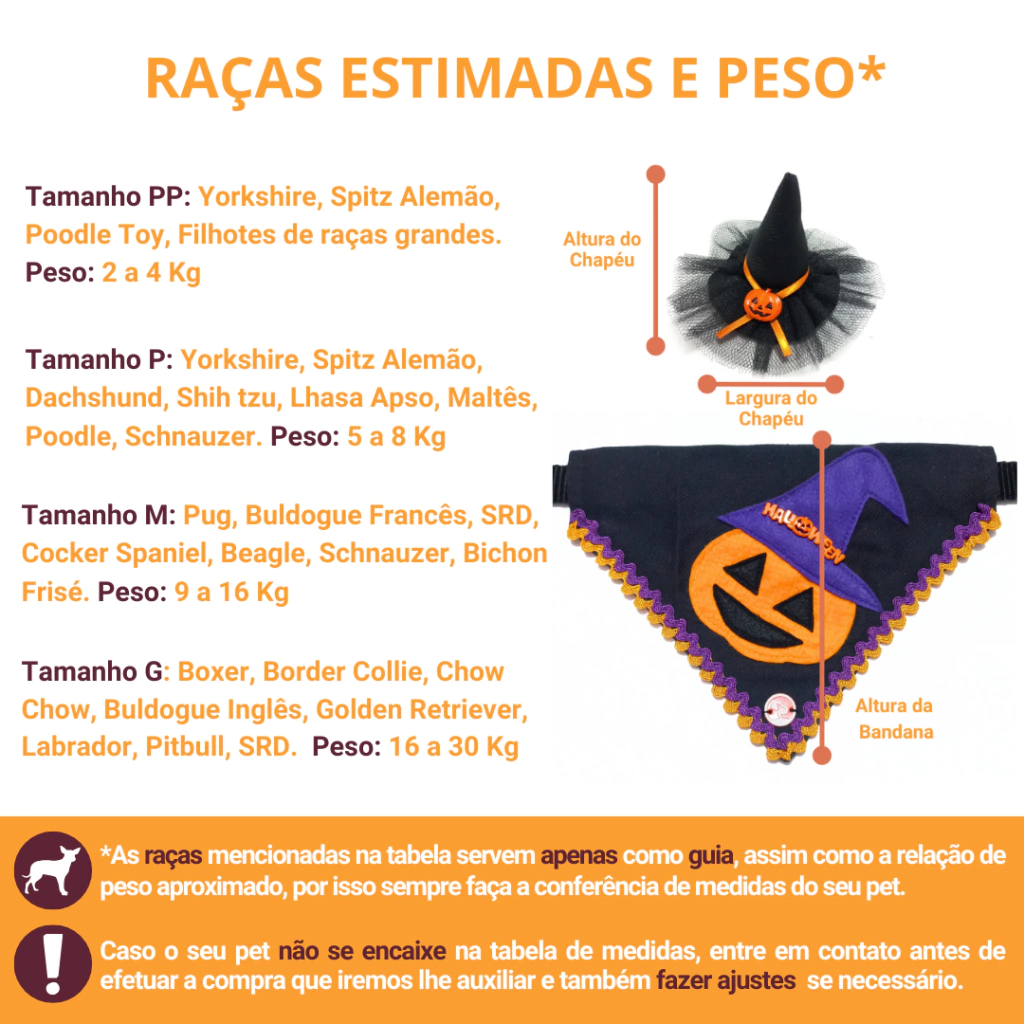 Fantasia Pet Halloween Abóbora Bandana com Chapéu de Bruxa + Laço Grátis