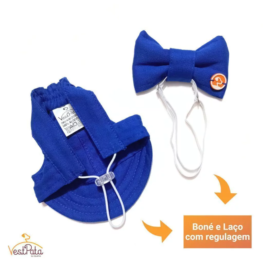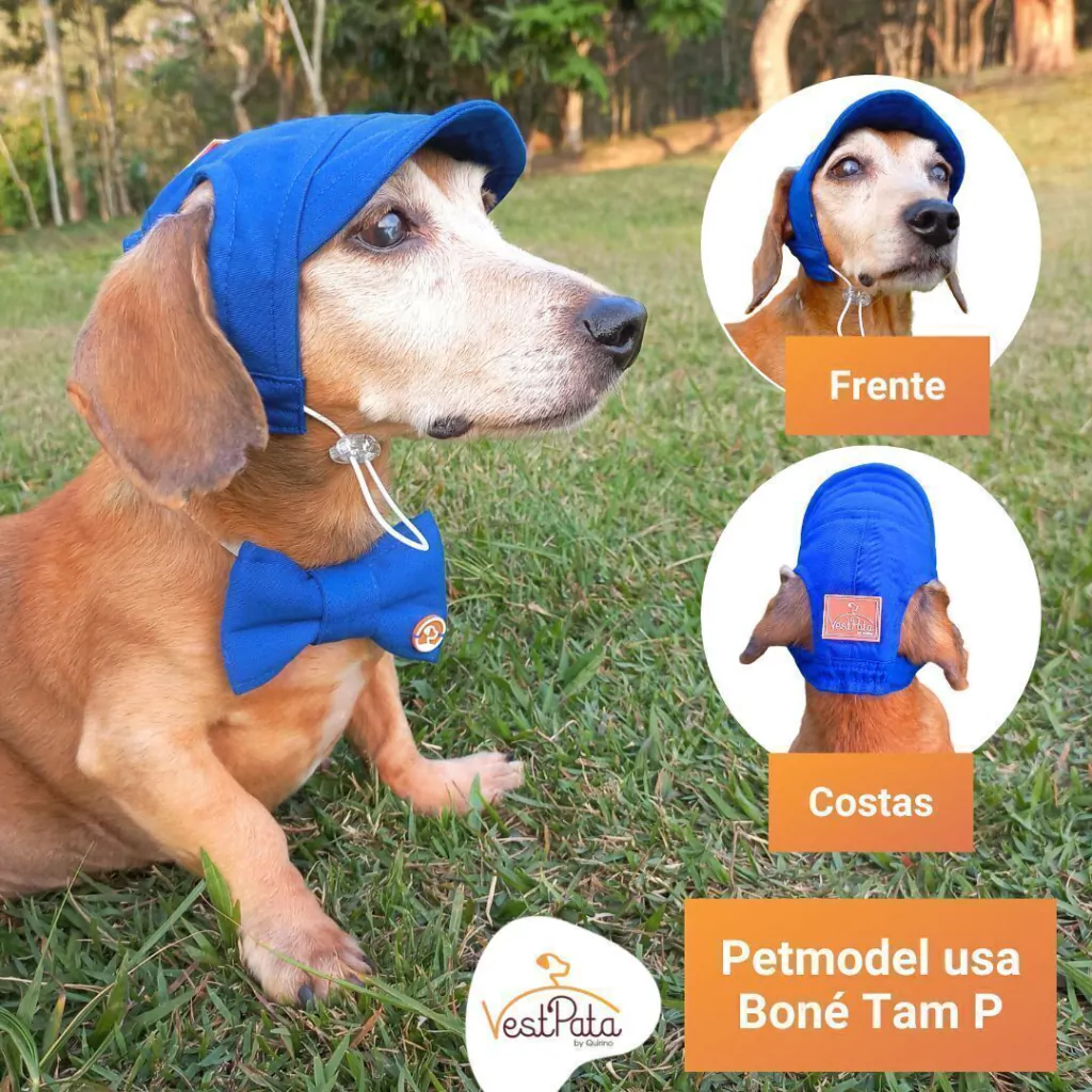 Kit Boné Pet Com Laço Tiara Ou Gravata Azul Royal