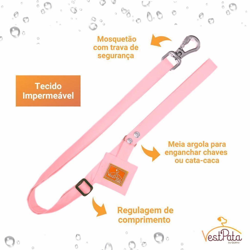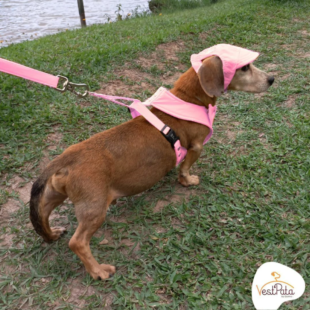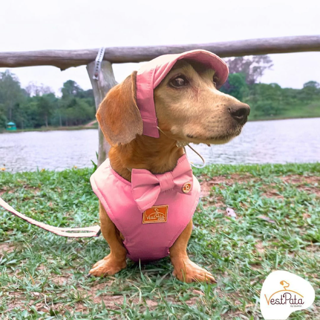 Kit Coleira Peitoral À Prova D'água Impermeável Rosa com Guia Cata Caca Boné + Laço GRÁTIS