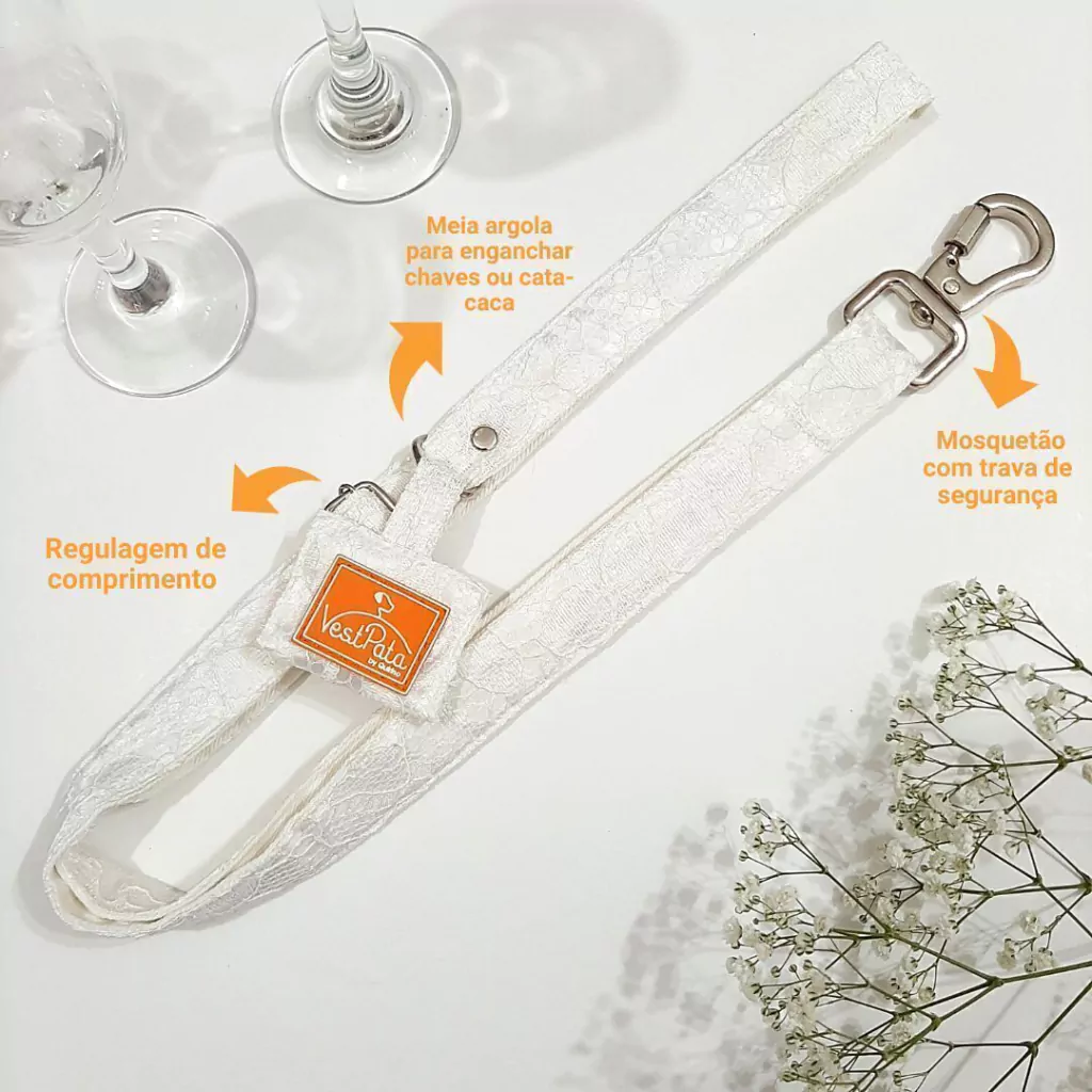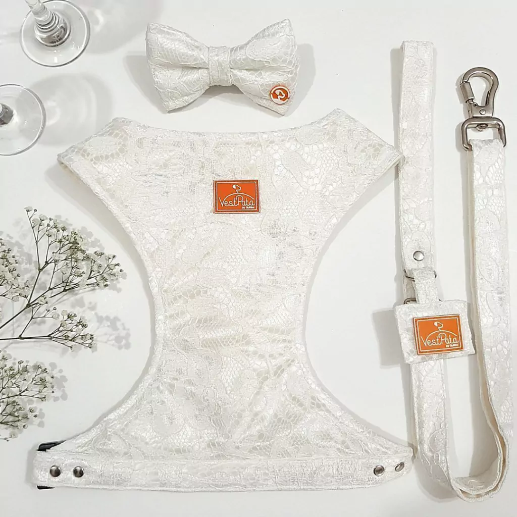 Coleira Peitoral Para Casamento Branca Com Guia e Laço Vestido de Noiva Pet