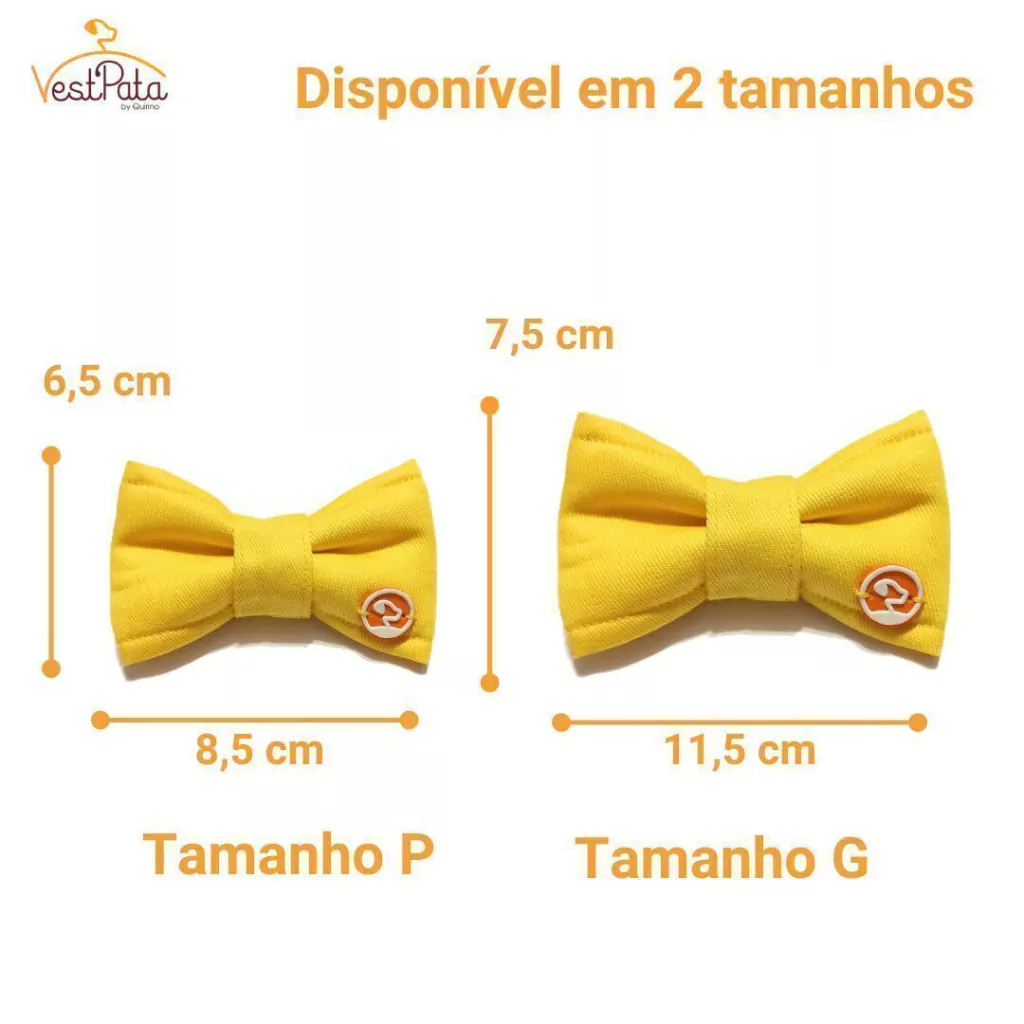 O Laço está disponível em 2 tamanhos diferentes, tamanho P, serve em pets de pequeno porte e alguns de médio porte. Tamanho G, serve em pets de médio porte a pets de grande porte.
