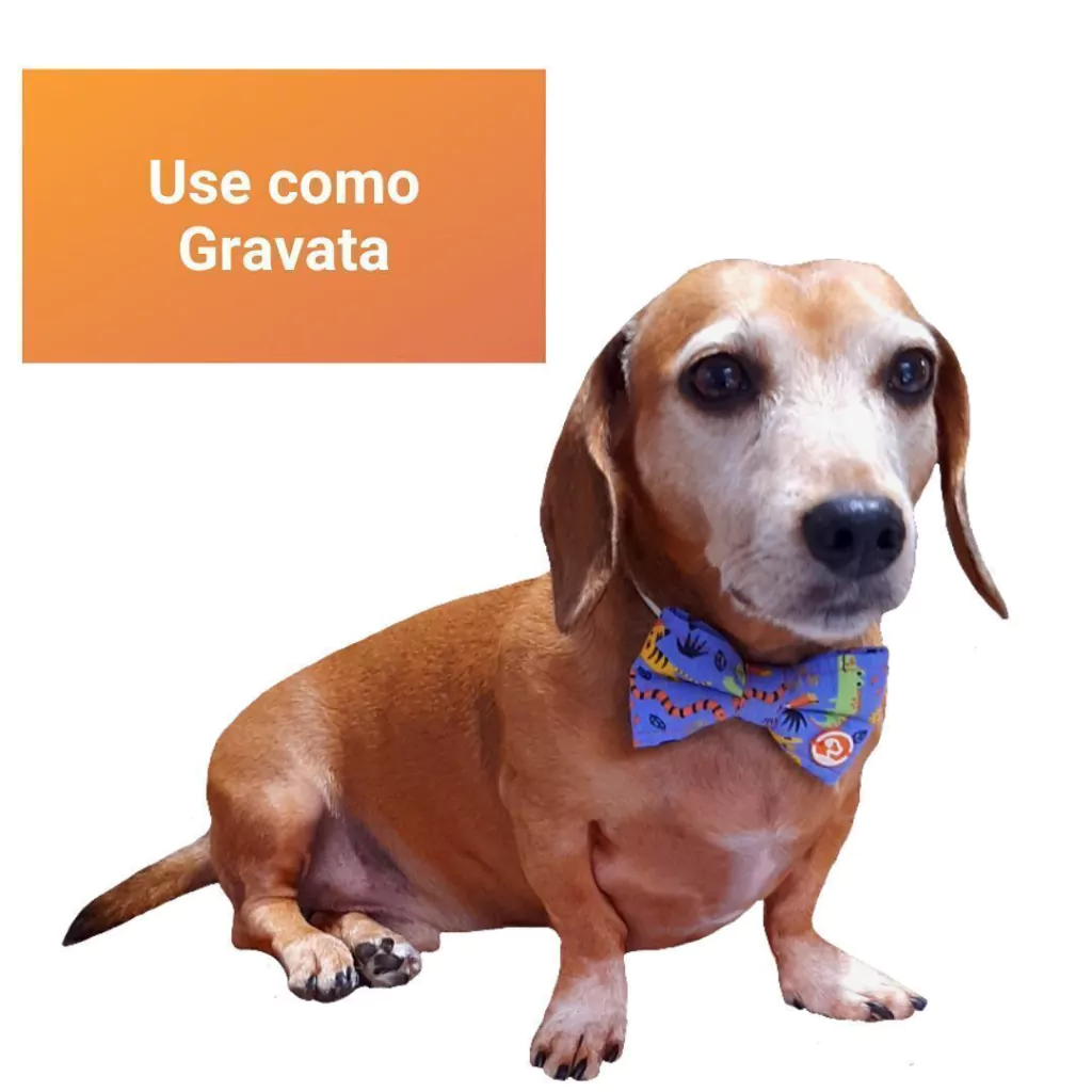 Use como gravata: é só regular o elástico em uma medida confortável e colocar no pescoço do seu pet, confirme se o elástico não está muito apertado a ponto de deixar o seu pet incomodado e nem muito largo a ponto de poder soltar.