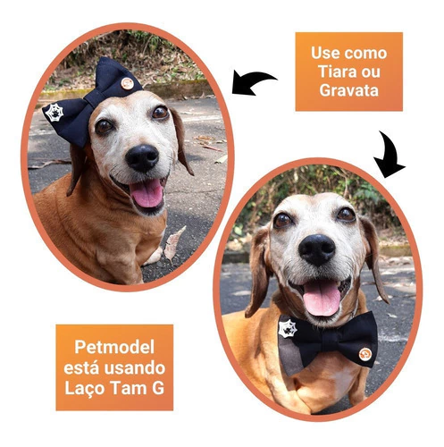 Use como gravata: é só regular o elástico em uma medida confortável e colocar no pescoço do seu pet, confirme se o elástico não está muito apertado a ponto de deixar o seu pet incomodado e nem muito largo a ponto de poder soltar.