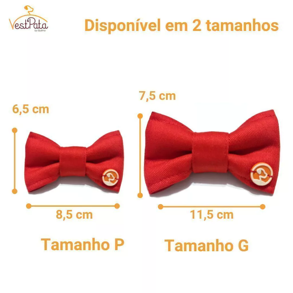 O Laço está disponível em 2 tamanhos diferentes, tamanho P, serve em pets de pequeno porte e alguns de médio porte. Tamanho G, serve em pets de médio porte a pets de grande porte.