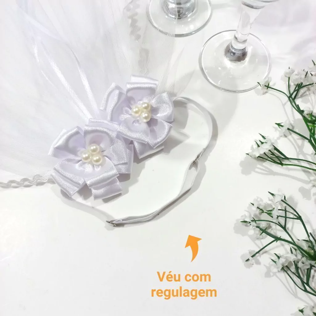 -Véu de noiva pet com regulador que permite o ajuste de modo prático e simples
